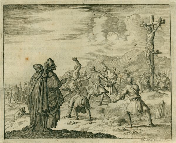 Jan Luyken created this etching, titled 'Evangelist John Exiled on Patmos, AD 97', using etching techniques. Luyken lived in Amsterdam during the Dutch Golden Age. His art often reflects the intense religious and political atmosphere of that era. Here, we see John, traditionally associated with authorship of the Book of Revelation, exiled to the island of Patmos. Consider the intersection of religious authority and political power that underpinned such exiles. Luyken presents John not as a figure of power, but as a solitary, almost vulnerable man wading ashore. The etching captures the emotional and physical isolation inherent in exile. The stormy sea and desolate landscape mirror John's inner turmoil, his faith tested by banishment. Luyken, who converted to the mystic religious movement of Pietism, likely saw in John's exile a parallel to the personal struggles of faith and persecution. This wasn't just a biblical scene for Luyken; it was a reflection on the cost of conviction, rendered with a poignant sense of human vulnerability.