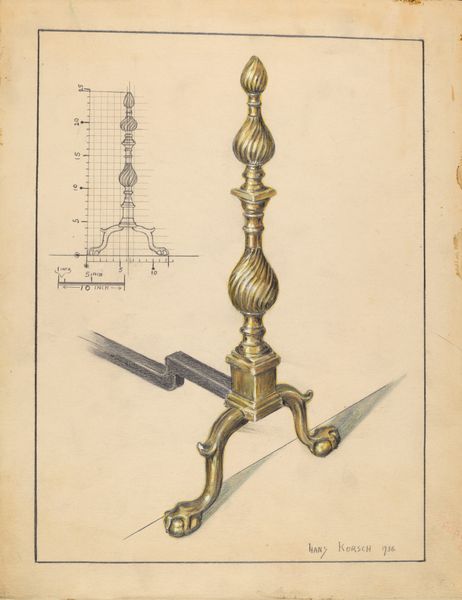 Jack Staloff made this drawing of an andiron, or at least one of a pair, using graphite and colored pencil on paper. The marks have a tentative, searching quality. It’s like he's figuring out the object as he draws it, building it up through delicate lines and shading. What really gets me going here is the interplay between the detailed rendering of the andiron on the right and the more schematic, diagrammatic version on the left. The contrast is striking. The one on the right has weight and presence, built up with subtle gradations of color. You can almost feel the cool, smooth surface of the metal. But over on the left, it's all line. Like an architect’s blueprint. The drawing reminds me a bit of some of the architectural studies of Claes Oldenburg. Both artists share a fascination with the intersection of the functional and the sculptural, the everyday and the monumental. It's not about fixed meanings, but about opening up a space for possibility.