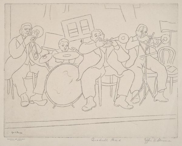 "Volks Cafe-Haus," made with ink on paper, was created by Adolf Dehn. Dehn, often celebrated for his social commentaries, here offers us a peek into a German cafe. It’s a scene bustling with men, women, and even a child, captured in an illustrative style that almost feels like a snapshot of a lively gathering. Dehn, being of German and Norwegian heritage, had a complex relationship with his identity. This drawing was made in 1923, shortly after the first world war, a period of immense political and social upheaval in Germany. The image conveys the social dynamics, suggesting a sense of community, or perhaps even tension, as individuals engage in conversation and leisure. What stories do you think are unfolding in this space? The Volks Cafe-Haus serves not just as a depiction of a place, but also as a reflection of the societal context of the time, inviting us to contemplate the emotional and personal dimensions of shared spaces during an era of change.