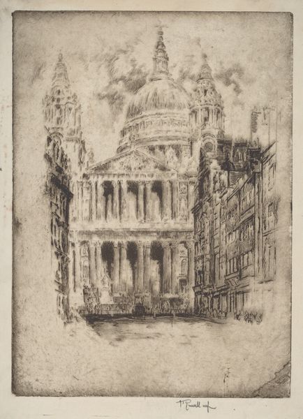 Joseph Pennell made this etching, Temple of Pomona, with ink on paper. The entire image is a kind of haze of tiny, tiny marks. It is less about the thing depicted, a building, and more about the accumulation of lines that suggest that thing. The etched lines are close together, hatching and cross-hatching to build up tones and shadows. There’s a real sense of the artist’s hand at work, scratching into the plate to create these marks. Look at how the lines vary in thickness and direction, creating a sense of depth and texture. Notice the way Pennell captures the bustle of the street, with tiny figures and carriages rendered in just a few quick strokes. It reminds me of Whistler, who was also interested in capturing fleeting moments and atmospheric effects through etching. It is a conversation about representation, and what it means to describe a thing with minimal information.