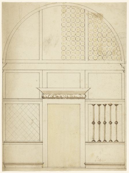 Giuseppe Bernardino Bison created this Pompeiian Wall Decoration using pen and brown ink with watercolor wash. It depicts an interior wall elevation with alternating compartments of simple classical motifs and complex ornaments arranged symmetrically. The design features diamond-shaped blue panels each with a white figure, and the architectural elements are carefully rendered with an emphasis on balance and proportion. Bison uses a formal system of organization, where each element corresponds to another, creating a visual harmony. The symmetry and geometric structure are in line with Neoclassical ideals that dominated the late 18th and early 19th centuries. Yet, the decorative elements, such as the floral patterns and ornate sconces, introduce a layer of complexity. These reflect the contemporary fascination with ancient Roman art. Here, Bison balances the architectural structure with free-flowing decorative flourishes, making this not just an aesthetic exercise, but a dialogue between form and decoration.