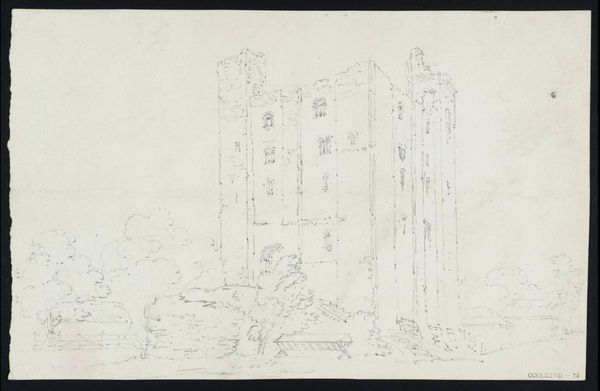 Editor: This is Carl Grossberg's "Sketch for Industrial Landscape," its date is unknown. It's a watercolor and graphite drawing. There's a haunting stillness to it, despite the subject matter. What do you see in this piece? Curator: I'm struck by how Grossberg uses architectural precision to depict industry, almost like rendering a sacred space. The industrial towers evoke a sense of cultural memory – perhaps a monument to progress, or a lament for a lost pastoral ideal? Editor: It's interesting you mention sacred space. I hadn't considered that, but I see it now! Curator: Consider the symbolic weight of the colors: the cool blues, the stark whites. Do they suggest purity, or coldness? It asks us to confront the emotional implications of industrialization. Editor: I think you're right, and it feels relevant even today. Curator: Indeed, Grossberg captures a tension we still grapple with, the promise and the peril of our own creations. Editor: It's amazing how a simple sketch can contain such depth. Thanks for your insight!