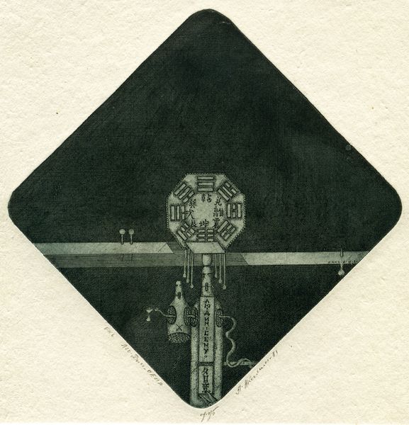 Curator: Here we have Oleksandr Aksinin’s “Gospel 1” created in 1984, an ink drawing on paper. Editor: My first impression is one of disorientation. The perspective is skewed, the shapes are simultaneously familiar and alien, creating an almost dreamlike or surreal cityscape. Curator: It's certainly striking, and deliberately so. Aksinin was working in a period when artists were grappling with the rigid constraints imposed on creative expression. He's subverting architectural forms and incorporating surrealist elements to push back against those limitations. This piece exists within the postmodernism art movement. Editor: Right, I'm seeing elements of that now. The geometric abstraction certainly pulls from various "isms," doesn't it? Tell me, in what way do those architectural elements reflect socio-political tension? Curator: Think of Soviet architecture, known for its imposing scale and functionality over aesthetics. Aksinin’s use of geometric shapes could be interpreted as a deconstruction of those ideals. Instead of a straightforward, legible depiction, we have a fragmented, ambiguous space. Also, let’s consider the title itself, “Gospel 1." The term “Gospel” typically suggests faith and unwavering belief. Editor: And by linking that to an unconventional drawing like this, the artist questions our cultural reliance on a fixed dogma and societal truths? Is that where you are going? This feels less about architectural documentation, and more of a metaphor for breaking from societal expectations. This idea is definitely visible when examining those ambiguous, floating figures. Curator: Exactly. The symbolism is multi-layered, but broadly it underscores the value of questioning power structures and thinking for oneself. These concepts resonate particularly in periods of repression, where questioning authority could lead to marginalization. Editor: Thinking about marginalized identities, does Aksinin use symbolism related to his own identity or position in society? This piece seems deliberately abstract and could benefit from an artist’s statement, no? Curator: That's a valuable point. While the symbols are universal in some sense, you are right, they are also likely tinged by his experiences. Aksinin's own experience certainly shaped his artistic practice and fueled his need to express non-conformist views in his art. Editor: Looking at "Gospel 1," I am considering a number of ways societies use images. Thinking specifically about its materiality, I would consider a more detailed visual examination for insight. It could make a profound statement. Curator: Yes, that close looking reveals more about its power. Aksinin’s artistic practice, within its historical and socio-political moment, is deeply compelling and reminds us of art's potential as a tool for reflection.