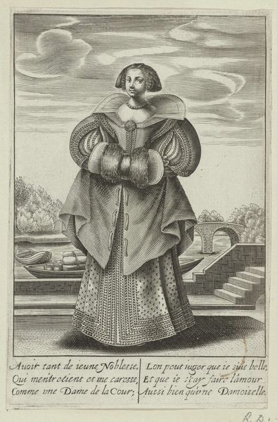 This print titled 'The Reformed Woman' was created by Abraham Bosse, who used engraving to produce an image preoccupied with the shifting boundaries between nature and artifice. Notice how the composition is structured around the woman figure, whose imposing presence dominates the pictorial space through intricate lines and textures. The effect is designed to draw you in. Bosse's use of linear precision emphasizes details of the room in an almost mathematical manner. This approach highlights the tension between the woman's adornments and the naturalness she seems to reject. Through the semiotic elements in the image, Bosse challenges the idea of fixed identity. The mirror is used as a signifier of vanity, yet it suggests a deeper reflection on societal roles and the performance of the self. The print invites a discourse on the nature of beauty, asking us to question the values imposed by culture.