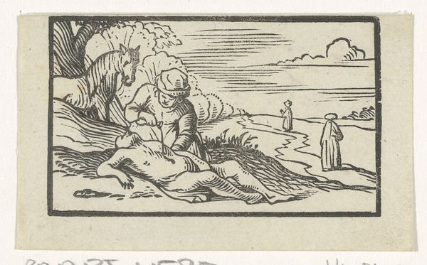 Dirck de Bray created this small print, “Similarity of Christ as the Good Shepherd,” sometime in the latter half of the 17th century using woodcut. De Bray lived during a period of significant religious and social upheaval in the Netherlands. In this small, yet powerful image, De Bray draws upon the deeply rooted Christian allegory of the Good Shepherd, a figure that has historically been associated with themes of care, protection, and sacrifice. The shepherd, traditionally seen as a masculine figure of authority, is here depicted in a moment of active defense, challenging a wolf that threatens the safety of the flock. The emotional resonance of this piece lies in its ability to evoke a sense of reassurance and vigilance. It speaks to the universal longing for safety and guidance. The image underscores a narrative of steadfast protection, reflecting the complex interplay between religious conviction and social responsibility, it offers a nuanced commentary on the era's spiritual and communal values.