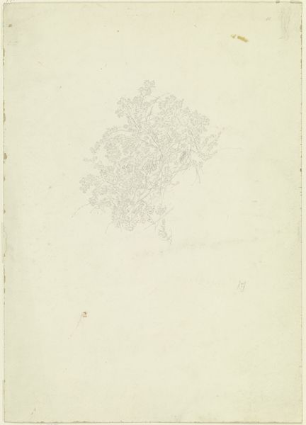 Editor: This is "Bloemstudie," a flower study drawn in 1777 by Wybrand Hendriks. It’s a delicate pencil drawing, almost ghostly on the page. It feels so ephemeral. What catches your eye about this work? Curator: Ephemeral is the perfect word! To me, it whispers of fleeting beauty, a moment captured before it fades. Look at the delicacy of the lines, barely there, like a breath on paper. It feels deeply personal, like we’re peering into the artist’s sketchbook. A secret shared, wouldn’t you agree? Editor: Absolutely! It’s not a grand, finished piece, but rather a glimpse into his process. A little vulnerable, maybe? Curator: Precisely! Vulnerable. Hendriks isn’t trying to impress us with virtuosity, but offering us an intimate encounter with nature. I imagine him, perhaps in his garden, capturing this bloom with loving observation. Do you get a sense of place from it, even though it's so minimal? Editor: Hmmm, a garden... I do see the gesture toward realism, but the overall impression is almost abstract because it's so light. Like a dream of a flower. Curator: Yes, a dream! It reminds us that even the simplest sketch can be incredibly evocative. I’m now wondering what kind of flower this might have been. Lilies, perhaps? Or something more exotic for the time? It sends me down a research rabbit hole. Editor: Me too! I'm leaving with a whole new appreciation for sketches, for the beauty in the unfinished. It feels more real, somehow. Curator: Exactly! A reminder that art isn't just about polished perfection, but about seeing and feeling, isn't it? I have to wonder now what flowers are in bloom at the Rijksmuseum garden... Time for a wander.