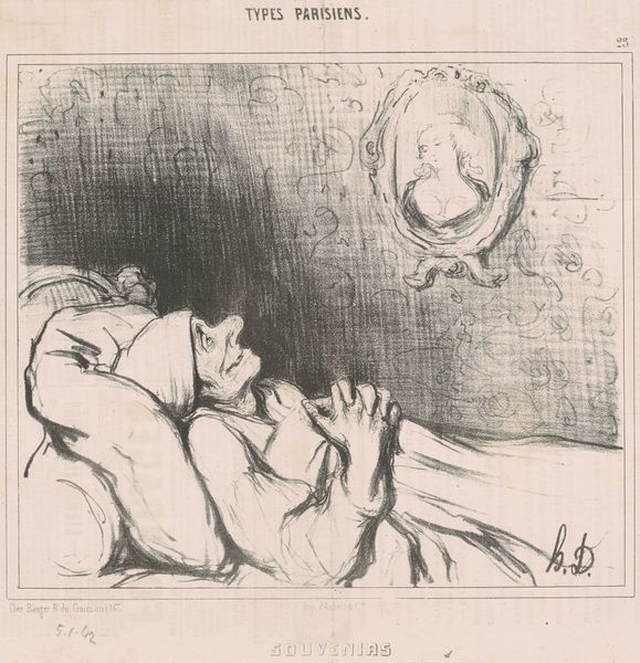 Honoré Daumier made this lithograph called "Ulysse et Pénélope". Daumier lived through a period of immense social and political change in France, including the rise of the bourgeoisie and the 1848 Revolution. His work often critiques the powerful through caricature. Here, he turns his attention to Homer’s Odyssey. The story of Odysseus and Penelope is traditionally one of heroism, love, and faithfulness. He is the brave hero who undertakes a long and difficult journey home, and she is the ever-patient and faithful wife. But Daumier subverts this narrative. We find a very aged Odysseus in bed, a spinning wheel above. Is Penelope now aging too? Are they weary of each other? This isn’t a romantic scene but rather one that’s heavy with the weight of time and perhaps, the loss of youthful ideals. The artist reframes the epic tale within the realities of aging, where even legendary figures are subject to the ordinary passage of time. Daumier invites us to consider the endurance, but also the potential burdens, of long-term commitment.