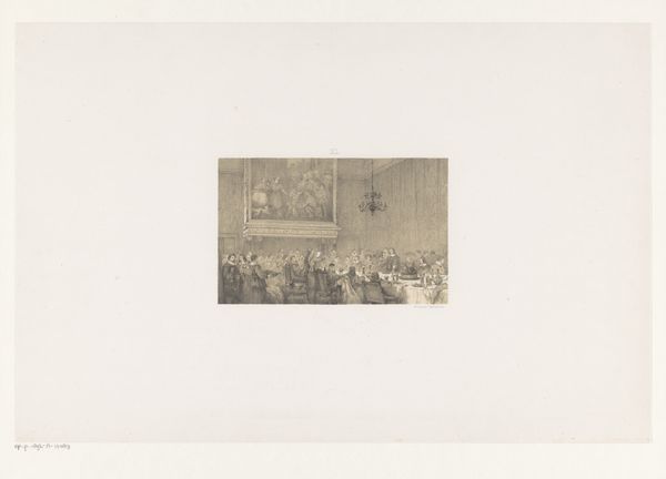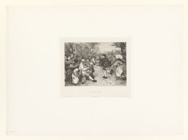 Johan Conrad Greive made this print, "Dancing Figures Around a Liberty Tree in Dam Square, Amsterdam," using etching, a printmaking process, sometime in the late 19th century. Etching involves coating a metal plate with a waxy, acid-resistant substance called a ground. The artist scratches an image into this ground, exposing the metal. The plate is then immersed in acid, which bites into the exposed lines, creating grooves. These grooves hold ink, which is then transferred to paper under high pressure, producing the final print. The technique allows for fine, detailed lines, capturing the atmosphere of the Amsterdam square. But it’s also a means of production. Prints like this one were relatively inexpensive and easily reproduced. This brings the celebratory scene to a broader public, beyond those who were there in person. Looking at this etching, we see how a print, traditionally regarded as a 'lesser' art form, can be an important means of documenting and disseminating cultural moments. It challenges the distinction between high art and everyday life.