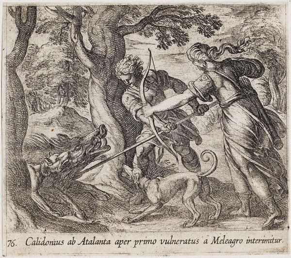 Curator: Tempesta's "Actaeon Killed by His Dogs" depicts a gruesome scene. What strikes you most about it? Editor: The violence is definitely what stands out! I mean, it's right there in the title, but seeing the dogs tear into Actaeon, it's intense. What's interesting is the context, though. Curator: Exactly! This isn't just about violence, it's about power, transgression, and punishment. Actaeon, punished for seeing Diana bathing, transforms into a stag and is killed by his own hounds. How does that resonate today? Editor: It's a stark warning against overstepping boundaries, maybe? Like, what happens when those in power feel threatened? Curator: Precisely. The myth speaks to the policing of bodies and the dangers of challenging authority, even unintentionally. Editor: That's a completely different way to look at it than just a mythological story! Curator: Art always reflects the society that creates it.