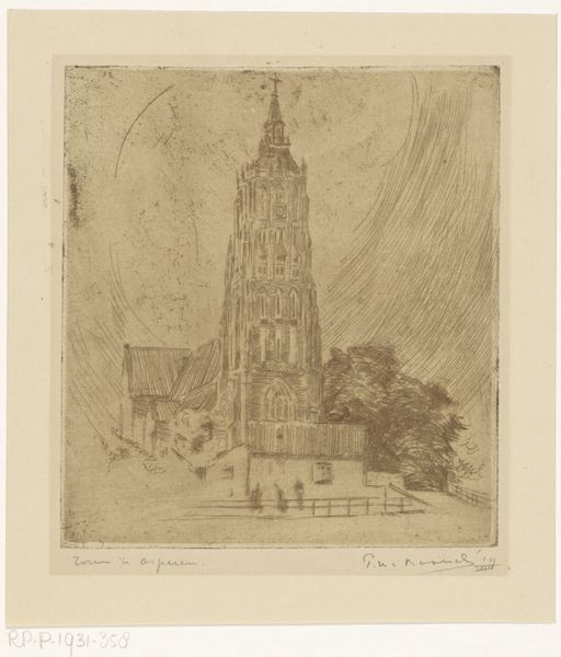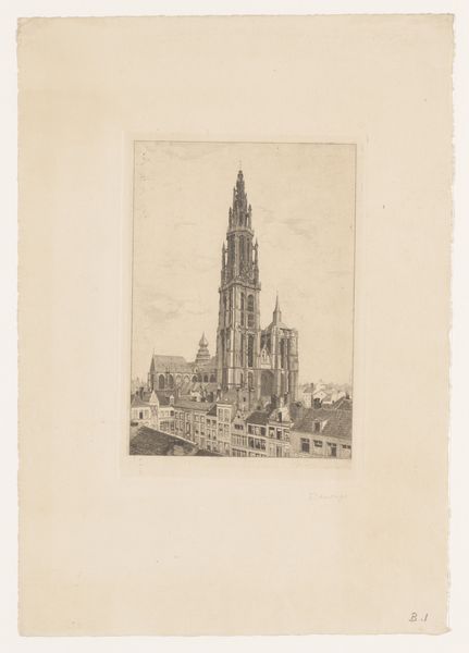 James Ensor made this etching of the Stadhuis van Oudenaarde, or Town Hall of Oudenaarde, using metal, acid and paper. An etching begins with a metal plate covered in a waxy ground. The artist scratches away the ground, then submerges the plate in acid, which bites into the exposed metal. The incised lines hold ink, allowing the image to be printed onto paper. The amount of labor involved in this process is considerable. But it is not the labor of mass production. Instead, etching demands a deliberate, painstaking approach, a rhythm of considered action. In this way, the relatively humble medium of etching contrasts sharply with the grandeur of the architecture it depicts. The Town Hall itself represents civic authority and collective effort, manifested in stone and mortar. Ensor's print offers a more intimate engagement, a kind of intellectual possession of the building. It invites us to consider how different modes of production shape our experience and understanding of the world around us.