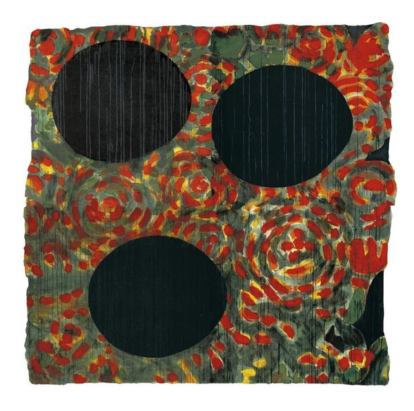 Editor: Here we have Donald Sultan's "Yellow Flowers," created in 2003, using acrylic paint. I'm really struck by the contrast – the bright yellow against that dark, almost brooding background. It's cheerful, but also feels a bit melancholy, if that makes sense. What's your take on it? Curator: Melancholy... I love that. You know, it's funny, because when I look at Sultan’s work, particularly pieces like this, I feel this odd sense of déjà vu. It's familiar, like a memory just out of reach. It’s undeniably modernist, but there's something almost primal about it. He’s playing with the idea of still life, but abstracting it to the point where it becomes something… else. Does that resonate with you at all? Editor: Absolutely! It's like the ghost of a still life. But that darkness in the background, does that speak to any particular period or artistic movement? Curator: In some ways, it whispers of the post-industrial landscape that was emerging in the early 2000s. Think about it - that intense yellow, so artificially bright, placed against something so fundamentally... grey. It is kind of like nature fighting to persist amid urban sprawl. Do you think there is tension present? Editor: Yes, absolutely! The yellow wants to jump out, but that darkness really anchors it. It’s not just pretty; it’s almost confrontational. Curator: Precisely. It avoids pure sweetness. So, we began with a superficial cheer, and wind up mired in contemplation. Always worth taking a moment to let an artist lead you somewhere unexpected, wouldn't you say? Editor: I definitely agree. I came in seeing a pretty picture, and now I'm thinking about urban landscapes and artistic intent.