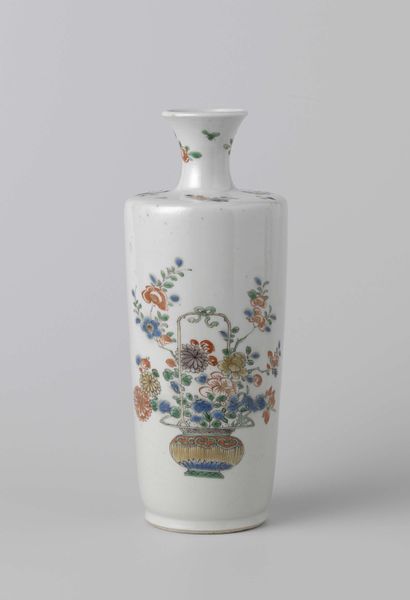 This octagonal bottle, an anonymous creation, invites questions about the everyday art of its time and place. Its delicate floral patterns, rendered in blue, yellow, and red, speak to the aesthetic values of its original cultural context. Bottles such as these weren’t merely functional objects; they carried social and cultural meanings. Perhaps the motifs reflect popular styles in textiles or ceramics. Who might have used such a bottle? Was it for medicine, perfume, or something else? And what can the act of decorating an everyday object tell us about the relationship between art and life in that period? Historical archives and studies of material culture can provide clues to the bottle’s origins and purpose. These resources can illuminate the social and institutional settings that gave rise to such objects, allowing us to appreciate the broader significance of this seemingly simple piece.