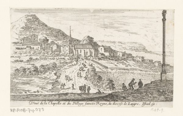 Editor: We’re looking at "View of the Village of Annecy," an etching by Israel Silvestre, created sometime between 1631 and 1661. It feels so meticulously ordered, almost like a stage set, but also very quiet. What catches your eye when you look at this piece? Curator: That stillness you perceive, I feel it too. But, in this apparent calm, I also find a certain... yearning. A yearning for the ideal. It’s all so neat, so perfectly aligned, reflecting that Baroque sensibility, I imagine Silvestre dreamt of escaping the confines of the real world, rendering it all elegant strokes and delicate lines, offering us an ethereal vision of this world. Notice how he teases the eye, leading us from that strong architectural element on the left through the gardens and into the receding village. Did it speak to you in that way? Editor: It’s interesting you say ‘yearning’… I mostly felt… separated. Almost as if that idealized image pushed you away, preventing you from imagining daily life for real people. Curator: I hear you. Maybe this idealized composition creates a distance for the viewer, allowing for appreciation of order without truly connecting. But let's think... isn’t every image a carefully crafted construct? What would connecting feel like in the gaze of eternity? It’s something to meditate upon... Editor: That is true. It feels very different now that you mention that he created an idealized view. That changes how I read the entire piece! Thanks for sharing! Curator: It makes you wonder about your relationship to space and memory, and I suspect Silvestre must've found the art of it magical!