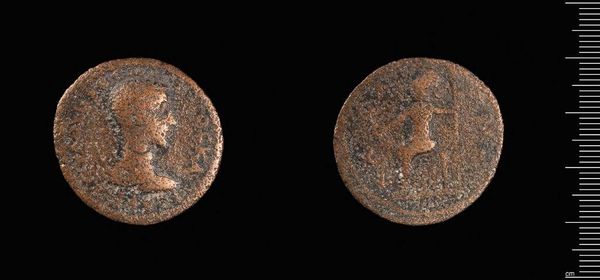 Curator: This is a coin from Mallos under Gordian III. Look closely at the material. Bronze, oxidized over centuries, feels substantial in its presence. Editor: It appears quite worn, almost smoothed. I wonder what hands it has passed through, what transactions it facilitated. Was wealth distributed equally in Mallos? Curator: Roman currency often featured idealized images of emperors, projecting power, but also standardizing identity across a vast empire. The creation of a shared consciousness. Editor: It also speaks to the labor involved. Mining the metal, the process of minting, the distribution of coinage – a whole network of exploitation undergirds this object. Curator: Right, and it's a form of propaganda. The emperor's image, his authority, is literally stamped onto the means of exchange, reinforcing hierarchy at every transaction. Editor: Its eroded surface now is such a contrast to the original intent. So much gets lost, or perhaps transformed, in the course of material history. Curator: Agreed. It shows the fallibility of empires. These coins are material traces of power, but time and use have had an impact. Editor: Definitely gives you pause to consider an empire built on bronze.