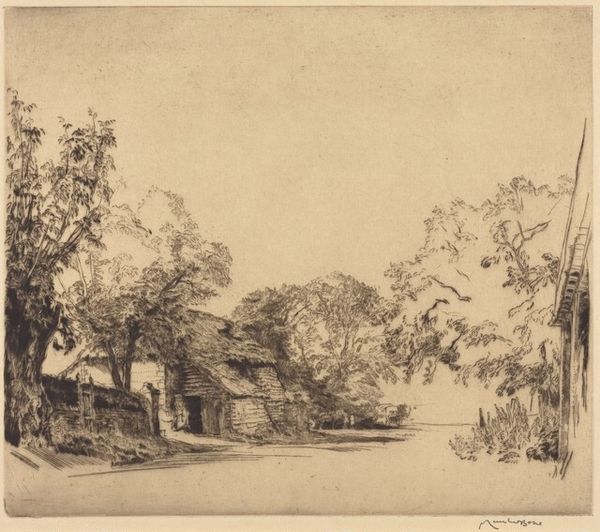 Curator: Johann Christian Reinhart's "Nocturnal River Landscape," dating from around 1780, offers a glimpse into the artistic sensibilities of its time through the subtle combination of pen, ink, graphite, charcoal, and pencil on paper. Editor: Immediately, I’m struck by the almost monochromatic tonality—the gradations of sepia give it an eerie, contemplative mood. You can almost feel the chill of the night air. Curator: Indeed. The skillful application of layering and shading is quite striking. The formal arrangement emphasizes the balance between light and dark, creating a dialogue between the architecture on the left, reflected in the water, and the group of figures clustered by a fire on the right. Note the dynamism. Editor: I’m curious about Reinhart's choice of materials. Was the accessibility of pen, ink, graphite, and charcoal a factor, perhaps indicating this was a preliminary study? Also, is this “river landscape” one we can concretely map somewhere? Or something in his imagination? Curator: Those are both valid and crucial insights. The multiplicity of these materials reflects the artist’s engagement with a readily available set of tools, aligning it with a working process often outside the high academic tradition. As for the site, whether imagined or real, the Romantic impulse to find sublime harmony in nature is undeniable here. Editor: Right, the labor invested is also revealed through the meticulous hatching and cross-hatching, which add depth and texture, it all evokes a sort of slow attentiveness that really does give insight into its moment. It’s also useful, in this context, to reflect on Reinhart's social position: the resources, connections and education that gave access to the leisure, not just the materials. Curator: A compelling reading of the piece—considering access and resources. Returning to form, I'm captivated by the economy of line, that defines shapes without unnecessary adornment; It’s this calculated approach that truly elevates the drawing. Editor: Thinking about the work and Reinhart, it strikes me that a material analysis enhances my appreciation of its intrinsic qualities—that this image as is couldn't exist in another time and context. Curator: Absolutely. By dissecting its construction, our reading of this artwork broadens. It no longer stands isolated, but rooted firmly within its temporal and material framework.