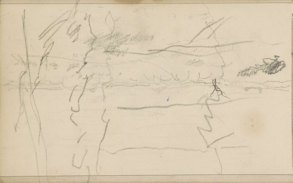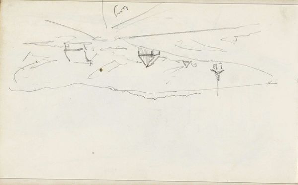 Editor: Right now, we’re looking at “Figuurstudies en een landschap of stadsgezicht,” or Figure Studies and a Landscape or Cityscape, a pencil drawing by George Hendrik Breitner, dating somewhere between 1886 and 1903. It's currently housed in the Rijksmuseum. It looks like a page torn straight from the artist’s sketchbook. It's… fragmentary. What do you make of a piece like this? Curator: It *is* fragmentary, isn’t it? Like catching a glimpse of Breitner's creative process. For me, it whispers of the fleeting nature of impressions, how artists capture the world not in definitive lines, but in a flurry of possibilities. It reminds me of a musical score, each mark a note, suggesting a melody that never quite resolves. I see him searching for form, playing with composition. A quick study of figures juxtaposed with the barest suggestion of a cityscape, or perhaps it's a landscape? What do *you* see? Editor: I like the idea of the musical score – I hadn't considered that. It makes it feel more dynamic, less…incomplete. The ambiguity of whether it's a landscape or cityscape also really stands out. I was too quick to label it! Curator: Labels can be prisons, especially for art! Breitner was an Impressionist. What is Impressionism about if not rebelling against clear-cut academic constraints? This drawing captures that very impulse. It's not about what things *are*, but about how they *feel*. Like a memory half-forgotten. Do you get that feeling? Editor: Definitely. And I hadn't fully appreciated how much of the art's story comes from *not* being finished. I typically prefer very detailed work, but I now can imagine seeing Breitner on site just noting down impressions for something bigger. Thanks for your illuminating perspective! Curator: It goes both ways; these kinds of initial impressions allow us to appreciate the freedom of initial impressions without the fear of the blank canvas! Always question, always explore… art's a playground.
