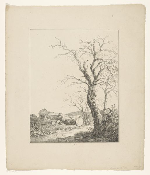 This ink drawing, "Illustration til Christian Winther, "Chresten og Lene", by Waldemar Bøhme feels like a fleeting memory, captured with delicate precision. The marks are so fine, almost like whispers on the page, building a landscape of soft textures and gentle contrasts. The drawing revels in the beauty of simplicity. Look closely at how the artist uses tiny strokes to create the illusion of depth in the trees, or the way the lines thicken and thin to describe the form of the soaring bird. Each mark feels deliberate, a testament to the artist's careful observation and steady hand. I love the way the image doesn't aim for a clear story, it just gives you enough for your own mind to wander into it. It reminds me a little of Whistler's etchings, with their emphasis on atmosphere and suggestion. Both artists seem to understand that sometimes, what you leave out is just as important as what you put in. Ultimately, this little drawing invites us to slow down, to notice the beauty in the everyday, and to appreciate the magic that can happen when art embraces ambiguity.