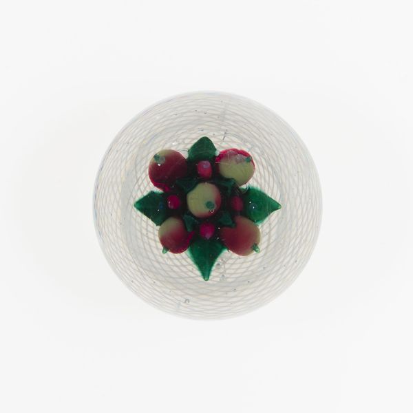 This faceted glass paperweight, enclosing delicate floral motifs, was crafted by the Saint Louis Glass Works. While seemingly a decorative object, its significance lies in its creation within a specific socio-economic context. Paperweights like this were emblematic of the burgeoning glass industry. France was at the center of glass production. Glassworks like Saint Louis produced luxury items for an expanding middle class. These paperweights encapsulate a moment of economic growth and industrial innovation. The floral designs encased within the glass are themselves visual codes, referencing the natural world but tamed and controlled within an artificial environment. These cultural references would have resonated with the buying habits of the time. To understand the full meaning of an artwork, it is not enough to simply admire its surface appearance. By consulting historical records, economic data, and cultural histories, the paperweight reveals a story of industrial progress, economic expansion, and the rise of consumer culture.