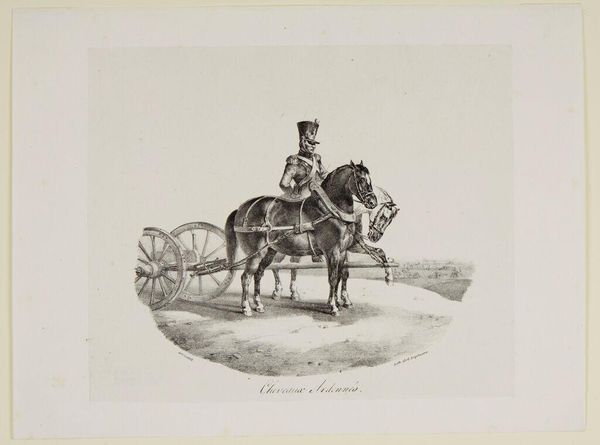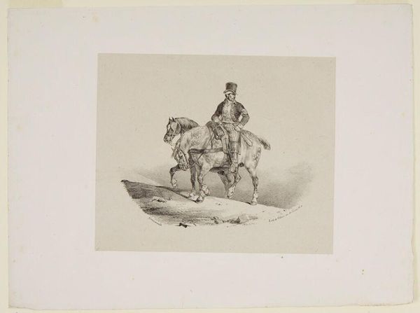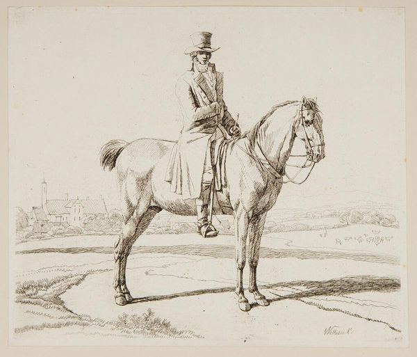 Editor: Here we have Théodore Géricault's "English Horse," a print, roughly 10 by 13 inches. It feels so precise, almost scientific. What do you see in how it was made? Curator: I see a study in the material conditions of leisure. Look at the etching—the labor involved in producing multiples, democratizing access to images of status. Editor: Status? Curator: Exactly. The horse, the rider's attire—symbols of wealth and power, meticulously rendered. Consider the consumption inherent in equestrian culture. Editor: So, it's less about the horse itself and more about what it represents in society? Curator: Precisely. Géricault uses the print medium to both depict and participate in the circulation of these social values. Editor: I never thought about it that way, focusing on the materials and how they reflect society. Curator: It shifts the focus from the artist's genius to the network of production and consumption.