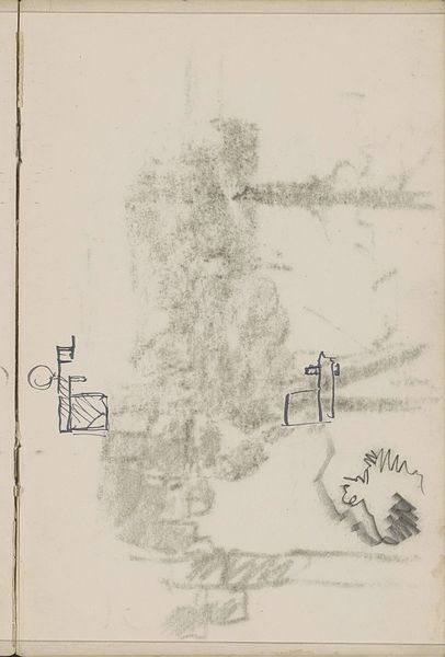 Curator: We’re now looking at a pencil drawing entitled "Bomen", or "Trees" in English, by Cornelis Vreedenburgh, likely created sometime between 1890 and 1946. It resides here in the Rijksmuseum collection. Editor: The immediate impression is of delicacy. The lightness of the pencil strokes and the vast empty space surrounding the trees create a very fragile mood. It feels like a memory more than a landscape. Curator: Indeed. Vreedenburgh, while working largely outside of established art groups, often depicted landscapes, especially scenes within the Netherlands. One might consider how urbanization and industrial expansion influenced artists like him, to render quiet, natural landscapes as places of refuge or nostalgic longing. Editor: I'm intrigued by the density of the lines in the tree clusters. There's almost a calligraphic quality to the mark-making. The tonal variations he achieves with just a pencil are remarkable—look how he builds depth using only layered, scribbled lines. Curator: His stylistic interpretation of Impressionism is certainly distinctive. His chosen subjects were often reflective of a nation seeking definition and reassurance, through idealized natural landscapes. His art spoke to broader societal attitudes, using landscapes as almost pastoral representations. Editor: You’re right. Although at first the composition seems unbalanced due to the placement of the trees on one side, in that formal relationship a very interesting asymmetrical tension arises that makes one concentrate on the materiality of the pencil against the off-white background. Curator: So, perhaps not simply a scene of "trees", but something evoking stability and an appeal to Dutch roots during a period of dramatic societal shifts. Editor: Yes, or an invitation, formally speaking, to consider how line and texture contribute to the experience of stillness. It is truly inspiring to observe his capacity for doing so much with what initially appears to be very little.