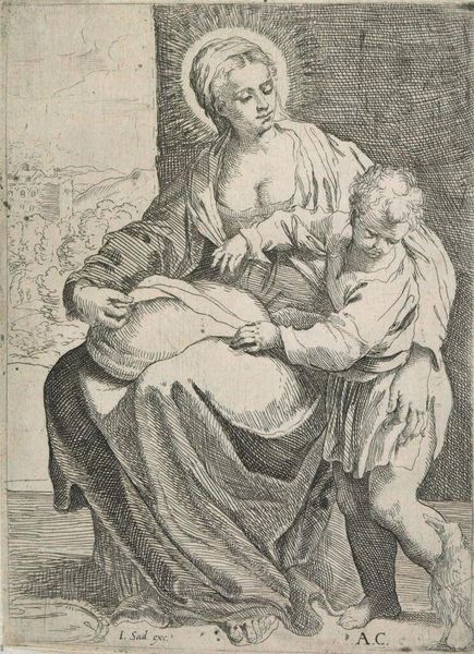 Editor: So, this is “Tabita,” an engraving by Jan (II) Collaert from sometime between 1595 and 1599. The incredible detail achieved through the engraving process is what first strikes me, and yet the subject seems pensive, heavy, as if something tragic has just happened. What can you tell us about this piece? Curator: The lines of this engraving offer an insight into the materiality of 16th-century printmaking. Think about the engraver, Collaert: his labor, the cost of the copperplate, the skill required to translate image to reproducible form. The scene depicts Tabitha, from the Book of Acts, resurrected by Saint Peter. Notice the expressions in the crowd, also resurrected by Collaert’s own labour? What does the shift from manuscript illumination to print mean for religious iconography and its consumption by the masses? Editor: That’s fascinating! The act of making as a sort of parallel to the act being depicted? Curator: Precisely. It democratizes religious imagery. The production shifts from monastic scriptoria to workshops, changing the dynamic of art creation. Now, consider who *could* afford such a print, and why? What narratives does this promote, and for what class of consumer? Editor: So, you're saying that it’s not just about the religious narrative, but also about the social context of its production and consumption? Curator: Exactly! How does mass production alter our understanding of rarity and value? Is it "high art" simply because it imitates painting or sculpture? Or should we instead be examining the social relationships inscribed within its production and the economic implications of its circulation? Editor: I see… it changes my perspective. The focus on process and accessibility brings the artwork to life in a completely different way, not as something distant, but interwoven in a context of making and using. Thank you. Curator: My pleasure! Hopefully, it also gives one pause to consider how those material circumstances, the when and how a work comes into being, shape how we ultimately interpret its ‘meaning.’