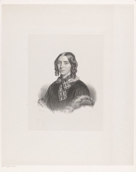 Curator: This is Johannes Christiaan d'Arnaud Gerkens' "Portret van Paulus Potter," an etching on paper from between 1824 and 1863, held here at the Rijksmuseum. Editor: My immediate reaction is that of thoughtful stillness. There's a quiet confidence, and an introspective air about Potter in the etching, even though he's presented with the tools of his trade. Curator: Considering the portrait, let’s think about the cultural capital associated with artistic professions during this period, especially within the Dutch Golden Age revival. To depict Potter with his tools suggests an intention beyond a simple likeness. It positions him, and the art world more broadly, within a specific framework of labour, class, and identity. Editor: Indeed, these painterly tools signify more than just vocation, don't they? Note how they are subtly placed. The palette and brushes could represent ingenuity and craftsmanship, certainly, but might they also represent legacy? The way light and shadow fall could speak of artistic tradition passed through time. It prompts pondering how artists viewed their own cultural contributions. Curator: Exactly! It also highlights the intersection of identity and artistic production. To further contextualize, we should consider the male gaze at play here, right? Gerkens, a male artist, represents Potter, another male artist. Editor: That makes me notice his attire as part of the symbol system. The plush fabric indicates his social standing but consider its relation to earth: this rich cloth contrasts to what he probably wears to meet mud of pasture painting—a point on class differences between painting for rich and rural patrons, as reflected in sartorial and visual representation. Curator: Yes! Furthermore, let’s question who benefits from such representations? Does it reify or subvert existing social structures? The portrait becomes a negotiation between artistic legacy and societal expectation. Editor: It does make me wonder, now: how do you feel this echoes down through history for our contemporary sensibilities? Do we see continuity of these social expectations or new challenges that speak to fresh, dynamic identities? Curator: An important question to consider when encountering art! These dialogues open our minds beyond face value and force us to interrogate representation and artistic context. Editor: Ultimately, it's such a privilege to share that act of critical and considered interpretation, helping visitors form richer relationships with visual art's symbolic potential and emotional resonances.