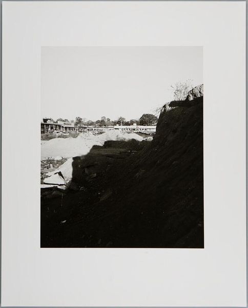 Editor: This is an untitled photograph by John Gossage, taken at an undetermined date, showing an electric meter and a parking lot. The composition feels a bit unbalanced, with a rough wall taking up so much of the frame. What do you see in the stark contrasts? Curator: Indeed, the rough texture of the wall against the smooth electric meter presents a compelling tension. Note how the artist uses the geometric forms of the meter and the wall to create a structured, almost abstract composition. The limited tonal range in this black and white image also serves to flatten the perspective, emphasizing the two-dimensional nature of the photograph. What do you think the artist's intention may have been in capturing such a mundane scene? Editor: I hadn't considered the flattening effect. Maybe he was trying to elevate the ordinary through careful arrangement. Curator: Precisely. Gossage masterfully uses form and texture to transform the commonplace into something worthy of contemplation.