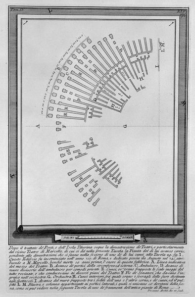 This is Giovanni Battista Piranesi’s etching, "Map of Ancient Rome and Forma Urbis," created in the 18th century. The print presents itself as a collection of marble fragments, each carefully shaded to give a three-dimensional quality. Notice how the composition leads our eyes to jump between pieces of stone, each marked with architectural plans of ancient Rome. Piranesi uses shadow and the texture of the stone to blur the boundary between meticulous documentation and romantic ruin. This technique serves not just to depict the city but to evoke its fragmented history. The visual language of ruins destabilizes the notion of a complete, recoverable past. Piranesi’s print suggests that Rome’s grandeur can only be understood through a lens of incompleteness, challenging viewers to piece together a history from scattered remnants. This fragmentation becomes a powerful statement on the nature of history itself.