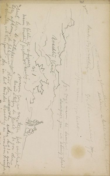 This landscape with buildings was sketched by Johannes Tavenraat using graphite on paper. It's a simple combination of materials, but look closely – the artist’s choice of graphite, a relatively soft and greasy medium, allows for both delicate lines and smudged, tonal areas. This is a quick sketch, which makes its making all the more evident. You can see Tavenraat building up the scene with layers of lines, especially in the buildings and reflections on the water. This hints at his process of observing and then translating what he saw onto paper. The softness of the graphite allows for this layering, adding depth and atmosphere to the scene. The handwritten notes surrounding the sketch feel like a stream of consciousness. All of this reminds us that even a quick sketch has materiality, process, and personal context embedded within it, raising it above a simple image.