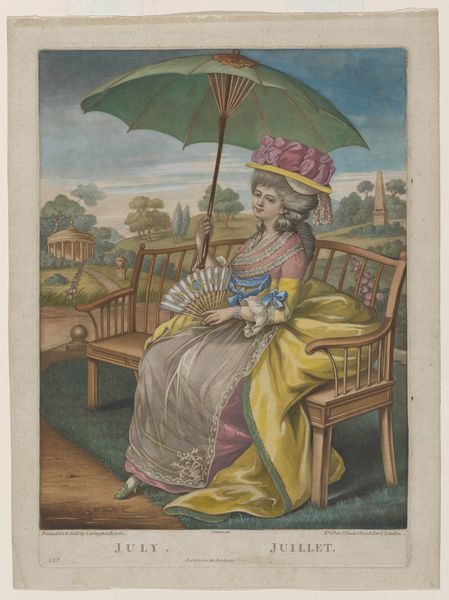 Robert Dighton created this print called "October" sometime around the late 18th century. At first glance, we see an elegant woman, her attire a tapestry of purples and golds, holding a riding crop, posed as if in a theatre stage. This riding crop and the equestrian scene in the background are not merely decorative. Equestrianism was associated with nobility and power, and was a signifier of social status and leisure. Consider the powerful presence of horses in ancient Greek friezes, or the Roman equestrian statues. These are all recurring motifs throughout art history, each iteration adapted to its time, but carrying forward echoes of its predecessors. The riding crop held by the woman carries a latent psychological charge, a potential symbol of control. The woman's fashion, with its bold colors and exaggerated forms, engages the viewer in a way that is at once captivating and subtly unsettling. This print exists as an echo, a reformulation of symbols that stretch back through time, surfacing in our modern consciousness with the same power to intrigue and engage.
