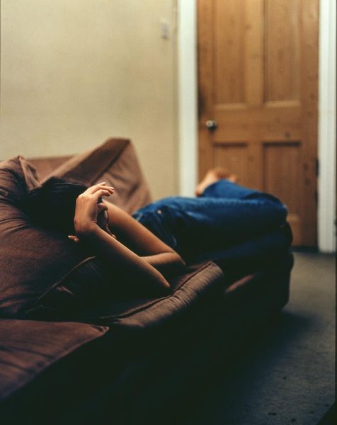 Curator: Elina Brotherus's "Model Study 3," a C-print photograph from 2008, confronts us with a figure bathed in light. It has such a casual domestic feel. Editor: It feels almost unsettlingly bright, doesn’t it? Like staring into the sun. The starkness of the light slices the figure into zones and flattens her dimensionality almost like in a Byzantine mosaic, where the soul triumphs over corporeal existence. Curator: Hmm, mosaic, interesting. For me it feels so quiet, a captured moment. The woman, seen from behind, she is sort of anonymous. A study indeed... what does she represent, the subject or the object? The way she holds the cable feels strangely assertive to me though. Editor: Assertive yes, because the cord, as thin as it is, represents her power—literally the source of life of the scene, electricity, current… Brotherus seems to evoke a reversal. Woman usually is presented as the aesthetic object. The picture makes me think of classical odalisques, painted with such assumed dominance. This composition in contrast questions the gaze and the objectification it usually carries. Curator: You are right, it flips the idea. It really triggers you to ask those big questions about viewing and being viewed. Do you think the slightly blurry quality affects the feel too? Editor: Definitely. The slight blurriness gives it a dreamy quality, distancing us further. As if memory itself is veiled. Blur here may be the admission that clarity, like a truthful representation, is, ultimately, unattainable and photography is nothing but illusion. Curator: I am convinced that photography is indeed an illusion, and it becomes a potent device with this image to really expose what matters about the viewer’s implication in the scene and to reveal the construction behind that photographic ‘truth’. I’m drawn to the composition itself and the quiet sense of drama. Editor: It has that perfect sense of the unresolved… or perhaps irresolvable. Yes. An alluring image, both calming and provocative. Curator: Provocatively insightful, and deeply calm and beautiful. That will be the end of our tour!