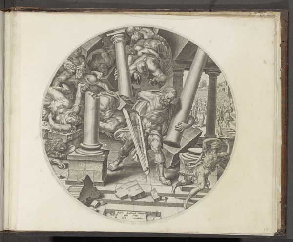 Philips Galle created this engraving, “Simson Doodt de Leeuw,” likely in the late 16th century in the Netherlands, drawing from the Old Testament story of Samson slaying a lion. The image itself creates meaning through familiar visual codes. Its circular format references classical tondos, associating Samson's strength with the virtues of antiquity then being revived through Renaissance humanism. Galle presents Samson not as a divinely empowered figure, but as a muscular, active hero whose stance and physique draw from classical sculpture. The work shows a Northern European tendency to interpret Biblical stories through a classical lens. The engraving may have been made for a wealthy patron keen to display his knowledge of classical and biblical themes. Works like these allowed the artist to establish his reputation within the cultural institutions of his time. By studying period literature and the artist's own context, we can better understand how this work spoke to its original audience. The meaning of art always depends on its social and institutional context.