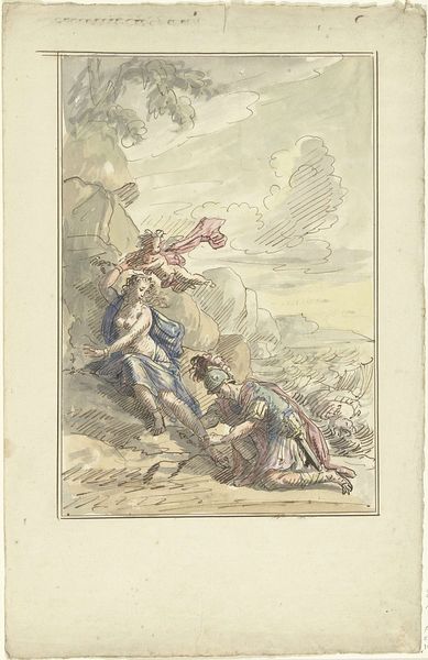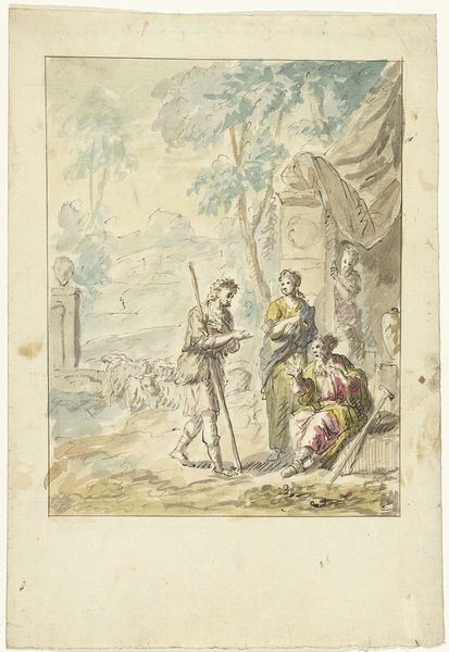 Elias van Nijmegen created this watercolor drawing of Izaäk receiving Rachel in the Netherlands, likely sometime in the early 18th century. It depicts a scene from the Old Testament, but it also speaks volumes about Dutch society at the time. The choice of this biblical scene, the depiction of its characters and the landscape, all point to the cultural and religious values that were prevalent in the Netherlands at the time. The Dutch Golden Age, a period of great economic and cultural prosperity, was coming to an end, and the country was grappling with issues of identity, religion, and social order. Artists like Van Nijmegen were often commissioned by wealthy patrons or religious institutions to create works that reflected their values and beliefs. Studying the patronage of the arts can reveal a lot about the social and political context in which art is made. To fully appreciate this drawing, we might consult historical records, religious texts, and other works of art from the period to better understand its intended meaning and impact.