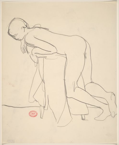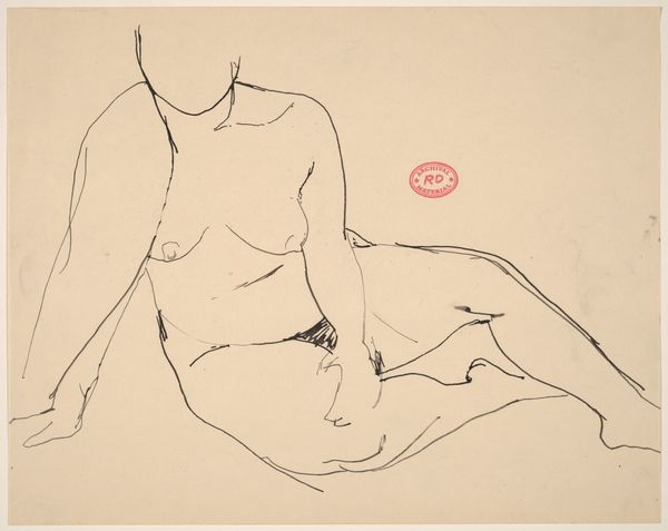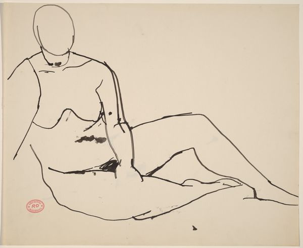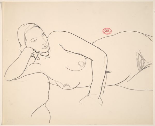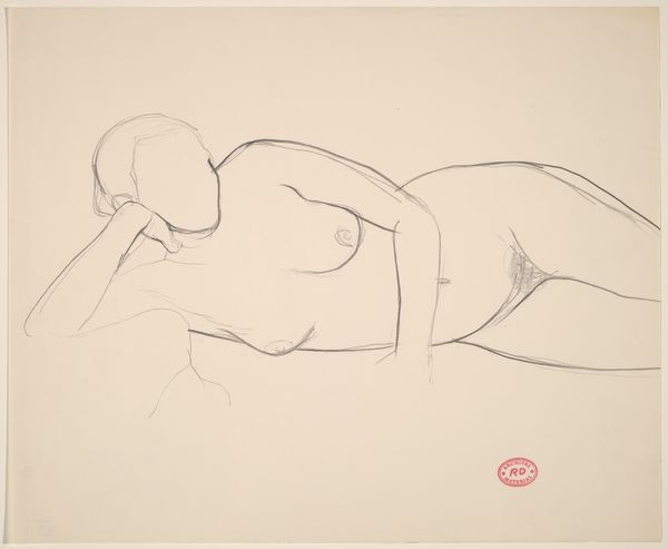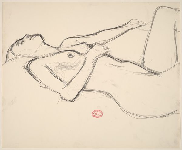 Curator: What strikes me immediately about this pencil drawing is its quiet intensity. The figure is reclining, but there’s a weightiness, almost a melancholy, in her pose. Editor: That’s an interesting reading. We’re looking at “Untitled [female nude lying on her right side],” a pencil drawing by Richard Diebenkorn, created sometime between 1955 and 1967. Considering that timeframe, and Diebenkorn's involvement with the Bay Area Figurative Movement, this piece exists in a liminal space, negotiating abstract expressionism with the re-emergence of the figure in painting. Curator: Precisely! I see echoes of earlier odalisque paintings, yet the artist avoids romanticizing the subject. Her gaze is averted, her expression unreadable. It almost feels like a confrontation with the complexities of representing the female form, caught between objectification and interiority. Editor: There's a certain timeless quality evoked by the lines themselves. The simplicity of the medium underscores the basic symbolic gesture of the artist, the very act of representing the female form and all the emotional, cultural, and psychological associations. It also feels incomplete somehow, like an abandoned icon just waiting for its sacred symbols to be rendered, awaiting more significance. Curator: Yes, the unfinished quality adds another layer. It's not just about *what* is depicted, but also what is *not* depicted. Diebenkorn leaves room for the viewer to project their own understanding, their own experiences, onto the figure. That becomes incredibly important when addressing histories of representation, and who gets to represent whom, particularly considering questions of gender and power. Editor: The hatching is particularly remarkable. The artist doesn’t use many lines, yet they create this profound sense of depth and dimension. This simple image triggers the mind’s natural capability of recognizing and understanding the depicted elements without being perfectly photo-realistic. This economy of line carries significance itself. Curator: Exactly, it is this act of incompleteness which grants access. I'm left with more questions than answers. Diebenkorn compels us to confront the loaded history of the nude in art and its reverberations in our contemporary moment. Editor: It makes me think of memory and cultural persistence – these symbolic forms carry echoes, allowing art and artists to transcend their specific time, allowing us to connect more deeply to images. Curator: A potent demonstration of how art can serve as both mirror and window, reflecting and refracting our own cultural and personal landscapes. Editor: Indeed, a beautiful visual artifact reminding us that seeing isn't always believing but often perceiving something profoundly deeper.