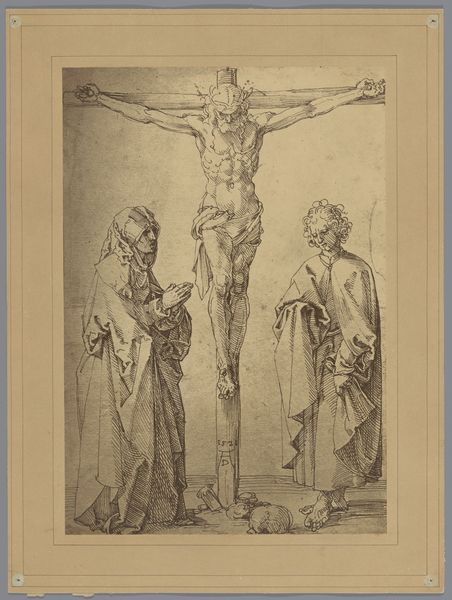 This small print, "Christus aan het kruis," was made by Wenceslaus Hollar, a prolific printmaker of the 17th century. Hollar created the image using etching, a printmaking technique that involves biting lines into a metal plate with acid. Think about the social context of this piece. Printmaking was a key technology in early modern Europe, as it allowed images and information to be disseminated widely and relatively cheaply. Hollar was deeply engaged with the culture of his time, documenting everything from fashion to cityscapes. Here, he used his etching skills to depict a central scene from the Bible, making it accessible to a broad audience. The power of this image lies in Hollar’s skillful manipulation of line. Notice how he uses varying thicknesses and densities to create a sense of depth and shadow, bringing the emotional scene to life. Hollar’s expertise allowed him to capture intricate details and convey complex emotions with limited means. By understanding the materials and processes behind "Christus aan het kruis," we can appreciate its significance as both a work of art and a product of its time. It challenges us to see the value and artistry inherent in so-called "minor arts," such as printmaking.