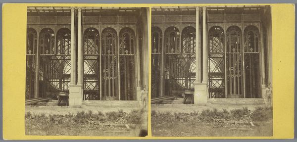 Curator: Pieter Oosterhuis created this gelatin-silver print, titled "View of the Supreme Court Building on the Plein in The Hague," sometime between 1860 and 1885. It resides here at the Rijksmuseum. Editor: It's stark, isn’t it? Very frontal, symmetrical. The monochrome adds a gravity to the already imposing architecture. Curator: Absolutely. It evokes the seriousness associated with institutions of justice. Oosterhuis’ work emerged in an era defined by positivism and legalism; the very principles which gave shape to the creation of many buildings. Editor: One almost gets a sense of the brick and mortar; how it was made… the work of building such a grand building. I think what I'm drawn to is the human scale – see the figure there, almost an afterthought? A sign of labor, maybe a passerby? It subtly implies all of the material and people behind the monumentality of this court. Curator: It could also suggest that the individual is subject to the system of law contained within those walls. Consider Foucault's writings on power and surveillance; the court as panopticon. Editor: Or perhaps a photographic monument to legal infrastructure and state power? It feels so constructed, not organic… but that could also reflect an era where new industrial methods changed building design and speed, allowing greater monumental projects of the law and order apparatus. Curator: That makes sense; considering its status in relationship to broader notions of urban planning at the time. How these photographic practices reflect and enforce social orders. Editor: This image gives us insight into the relationship between technological advancements in materials and labor; and new manifestations of legal and political authority. It really underscores the physical creation, brick by brick, of these types of institutions, and their social place as monumental architecture. Curator: This exploration underscores the enduring impact that legal systems can exert on shaping both landscapes and individual lives. Editor: Precisely!