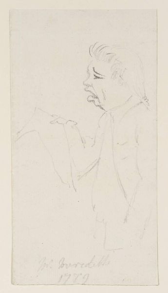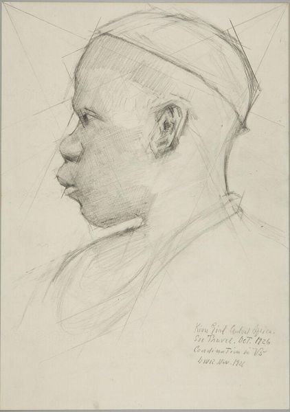 Curator: Here we have Denman Waldo Ross’s drawing, "Male Head in Profile," housed here at the Harvard Art Museums. It measures approximately 28 by 21.5 centimeters. Editor: There’s a kind of tentative quality to the lines, like the artist is searching for the inner character as much as the outer form. A feeling of quiet observation. Curator: Absolutely. The visible construction lines and the soft graphite reveal the process, the very labor of creating this image, making it feel immediate and accessible. Editor: But even as a sketch, that profile echoes classical sculpture, an eternal ideal viewed through a contemporary lens. It's not just a likeness; it's a statement. Curator: Perhaps about the enduring power of classical forms, replicated through the mundane means of pencil and paper? Editor: Precisely. It suggests timelessness. Curator: It’s fascinating how something so seemingly simple in its construction can carry such a weight. Editor: Yes, a dialogue between tradition and the act of making.