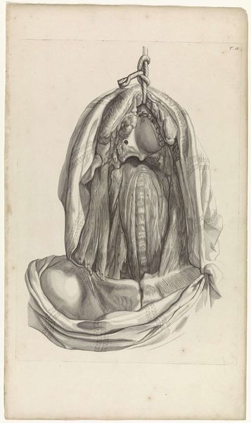 This is Pieter van Gunst’s "Anatomische studie van een gevilde linkeronderarm," or anatomical study of a flayed left forearm, made at the turn of the 18th century in the Netherlands. In this image, we see a graphic depiction of the muscles of the human forearm exposed through the act of flaying. The image creates meaning through the visual codes of scientific observation and the cultural references to the anatomical studies that emerged during the Renaissance. The Dutch Republic was a center for scientific inquiry, with institutions such as universities and scientific societies playing a crucial role in advancing knowledge. This print reflects the broader cultural interest in scientific exploration and the systematic study of the natural world. The artist’s precise rendering of the muscles underscores the importance of anatomical knowledge in medical education and practice. To understand this image better, historians rely on resources such as medical texts, anatomical treatises, and archival records documenting the scientific and intellectual climate of the time.