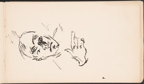 Curator: Here we have John Singer Sargent's "Two Sketches of Dogs," a small ink drawing held at the Harvard Art Museums. What's your initial reaction? Editor: Angular and quick! There's something unsettling in the hasty lines, like industrial machine parts reconfigured as pets. Curator: Sargent often moved in elite social circles, painting portraits of the wealthy and powerful. These sketches, however, offer an intimate glimpse into his process. Look closely at how the minimal lines capture the dogs' forms. Editor: Right, and I find myself thinking about the paper itself. It's a ground material, the very surface that allows this fleeting representation to exist. Were such affordable materials easily accessible at the time? Curator: Absolutely, and that accessibility contributed to the democratizing of art. It enabled artists to experiment, even in preparatory sketches, and challenge traditional notions of what constituted 'art.' Editor: These dogs, raw and imperfect, seem far removed from the polished portraits Sargent is known for. Perhaps that’s their appeal – unmediated process laid bare. Curator: Indeed, it's a revealing look behind the curtain, showing the artist's hand and mind at work, removed from the pressures of representing social status. Editor: It really makes you consider the labor and materials that underpinned his entire artistic project, doesn't it? Curator: Precisely, seeing this, I now have a whole new perspective on Sargent. Editor: And I see the humble materials that make this view possible.
