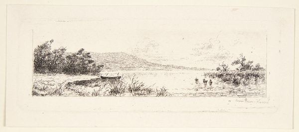 Editor: So, here we have Henri Braakensiek's "Tutzing" from 1922, a pen and ink drawing on paper. It's… intriguing. Sort of feels like a dreamscape of a town nestled by a lake. All those scribbled lines! What captures your attention most in this piece? Curator: Oh, it's the immediacy of it all, isn't it? It's like stepping into the artist's sketchbook. He's captured not just the place, but also a feeling, a moment in time. That lake… It's barely there, just suggestions of water. And yet, I can almost smell the dampness. Don’t you find it almost… poetic in its roughness? Editor: Poetic roughness! I like that. But what about the houses all clumped together? Is he saying something about community, or maybe the lack of space? Curator: Perhaps both? Or perhaps nothing concrete at all. Maybe it's just a man with a pen, quickly jotting down what he sees, what he *feels*. Those buildings huddled together... they could be a fortress against the elements, or just how he remembers it! Do you think we always need a "reason," a solid meaning, in every stroke of art? Editor: That's a good question! I guess not. Sometimes it's the feeling that lingers, more than a specific message. Curator: Exactly! It reminds me that art can be like catching butterflies - sometimes the beauty is in the fleeting glimpse, not in pinning it down. And I find that thrilling! This quick sketch is full of life. What do you make of the quick, short hand script notation on the horizon line of the distant hill, perhaps to represent clouds? Editor: It is almost like a secret language… or perhaps the suggestion of musical annotation hovering above the depicted scene. Thank you, this gave me so much to consider. Curator: Absolutely, it’s been lovely chatting with you too! The experience really helped to open up a renewed vision for myself.