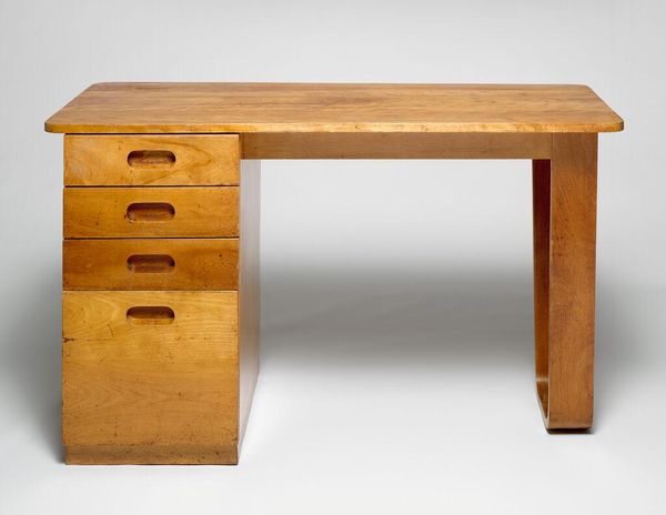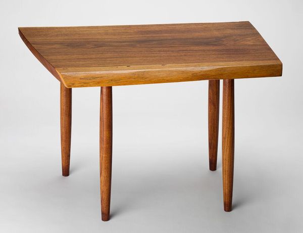 Editor: Here we have George Nakashima's Coffee Table, an organically shaped wooden creation. There's something so grounding and serene about the natural wood grain and imperfection. What symbols or deeper meanings do you see embodied in this piece? Curator: The wood itself carries immense symbolic weight, doesn't it? Its grain tells a story of growth, resilience, the passage of time. The conscious incorporation of the wood's "imperfections"—knots, splits— these are not flaws, but rather poignant symbols of wabi-sabi, finding beauty in transience. Editor: I see, it's almost like honoring the tree's life cycle, instead of erasing it. Curator: Precisely. It's a celebration of nature's unyielding spirit, rendered into functional art. What does that evoke in you? Editor: It makes me consider how our interactions with art and nature can lead to profound insights and connection. Curator: Indeed, a humble coffee table can be a reminder of our interwoven existence.
