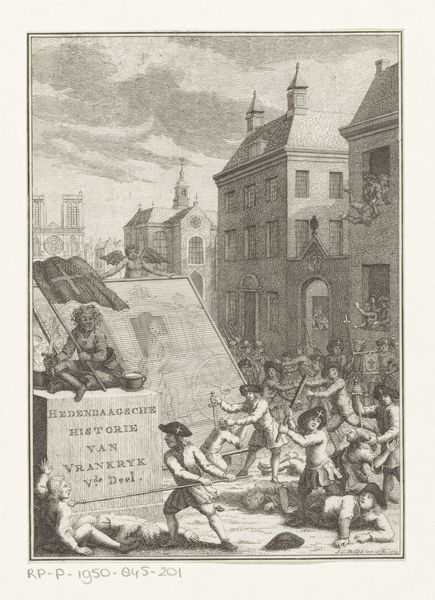 Laurens Scherm created this print titled, 'Plundering of the house of Mayor Boreel during the Aansprekersoproer', in 1696 using etching. It captures a moment of intense social upheaval in Amsterdam. The print vividly depicts the chaos and anger of the 'Aansprekersoproer', a revolt triggered by economic grievances and the perceived corruption of the ruling elite. The Aansprekers were paid to invite people to funerals, and an increase in taxes levied against them led to riots. Here, we see the home of Mayor Boreel under siege. The rioters, a mix of genders and classes, are animated with a shared purpose. The image conveys an emotional narrative of popular resistance against perceived injustice. How might the artist's own position have shaped his representation of this event? This is a visceral depiction of a society in conflict, raising questions about power, representation, and the collective expression of discontent.