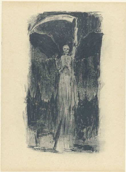 This intense drawing was made by Joy Hester using brush and ink on paper. With its stark, almost brutal application of ink, the work conveys a deep sense of emotional urgency. Hester's method perfectly matches her subject matter. Look at the quick, gestural strokes that define the figure's emaciated body and the dark, wing-like shapes flanking it. The ink bleeds and pools in places, creating a sense of unease and foreboding. It’s clear that Hester wasn't interested in technical finesse; rather, she wanted to capture raw feelings. This directness lends the work its power. The choice of ink, a readily available and inexpensive material, further emphasizes Hester's focus on immediacy and expression over preciousness. The result is a work that feels both vulnerable and defiant, challenging us to confront uncomfortable truths about the human condition. It reminds us that art doesn't always need elaborate materials or techniques to make a profound impact.