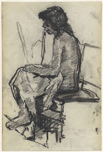 Mark Rothko sketched this drawing, “Long-haired Woman Seated with Left Leg Crossed and Hands on Ankle,” with ink on paper. The drawing presents us with bold, rapid strokes that coalesce to form the figure of a woman. The composition centers on the seated figure, with swathes of ink delineating her form and the chair, set against a stark, empty background. The lines are raw and gestural, capturing not just the physical likeness but perhaps also an emotional state. Consider how Rothko uses the stark contrast between the black ink and the bare paper to create depth and shadow. The lack of detail invites us to contemplate the essence of the subject rather than specific details. The drawing serves as a study in form and emotion, distilling the figure to its most fundamental elements. It's a powerful reminder that art's value often lies in what is suggested rather than explicitly stated.