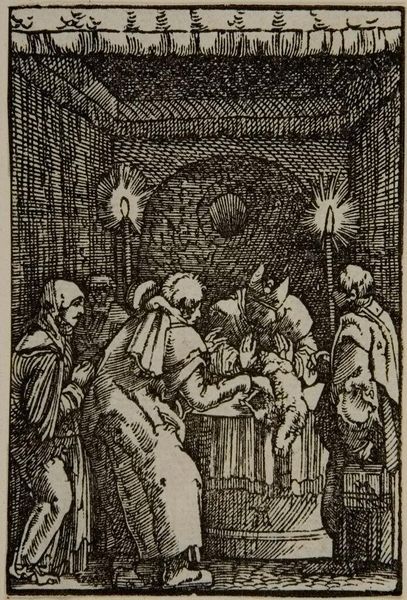 Curator: This is Jacques Callot's "Burial of the Virgin," a small yet powerfully evocative etching made sometime between 1592 and 1635. Editor: There's a strange tension here. The tight crosshatching makes the scene feel enclosed, almost claustrophobic, but the radiant light from above suggests something transcendent. Curator: The scene depicts the moment of the Virgin Mary's dormition, where instead of dying, she peacefully passed from earthly life into heavenly glory, hence the angels above. The apostles are gathered around, their expressions a mixture of grief and awe. Editor: The use of chiaroscuro is striking, creating deep shadows that emphasize the figures' emotional weight. The artist really uses the contrast to its full potential. Curator: Callot was a master of etching, renowned for his ability to capture minute details and complex scenes. The composition follows a symbolic arrangement, the earthly realm below and the celestial realm above, united through the Virgin's passing. It speaks to a universal desire for transcendence and connection with the divine. Editor: I am struck by how the artist manipulates light and shadow to guide the viewer's gaze through the unfolding narrative. There is something very evocative in how he uses such sparse technical means to create a sense of weight and gravity. Curator: Indeed, Callot offers us a poignant meditation on faith, mortality, and the promise of eternal life. Editor: A lot to unpack here.