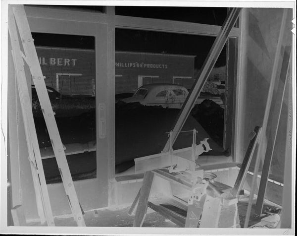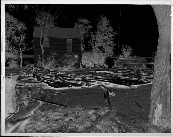 Editor: This is an untitled photograph by Lucian and Mary Brown, showing a farm damaged in a tornado. The high contrast makes the scene feel stark and unsettling. What social narratives do you see reflected here? Curator: It evokes a visceral sense of precarity. I’m drawn to how the image captures the vulnerability of rural communities. It’s not just about physical destruction, but about the deeper societal impacts of environmental events, issues of resilience, class, and how these disasters disproportionately affect marginalized groups. What does this image tell us about the power structures at play? Editor: That is a good point. Curator: Perhaps it also questions the romanticized vision of rural life. Editor: I agree. Seeing it this way definitely adds another layer to my understanding.
