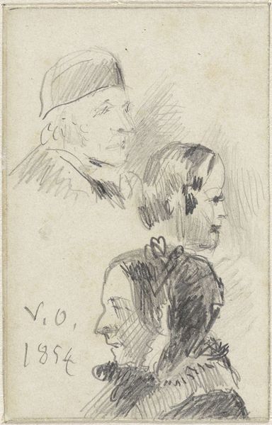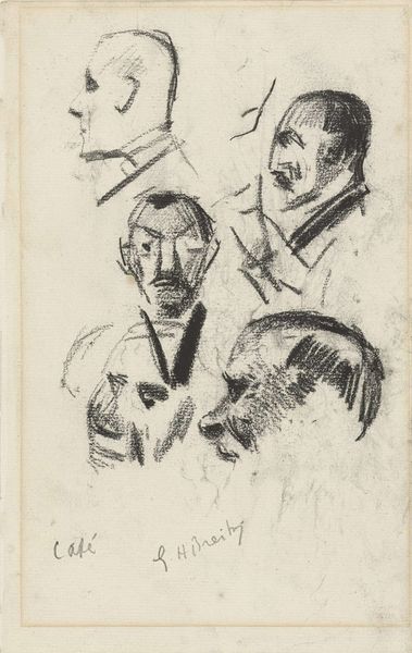 Georgius Jacobus Johannes van Os created this study of four men's heads with a graphic medium on paper. Observe the varied expressions and features meticulously captured, each head turned or tilted to offer a different perspective. The contrast in their appearances beckons a deeper look. The figure with glasses, for instance, presents an intellectual air, reminiscent of scholars depicted in Renaissance portraiture. Consider how the simple act of portraying the face has been a consistent thread through art history. From ancient Roman busts to the works of Rembrandt, the face serves as a canvas for expressing inner character and societal role. Even in our modern age, the human face endures as a potent symbol in art, perpetually evolving yet eternally resonant. This timeless fascination highlights our deep-seated need to decipher one another. The act of sketching itself—a fleeting, almost subconscious capturing of form—connects Van Os's work to countless artists across time. The faces in this study evoke a spectrum of emotions, hinting at narratives and histories just beyond our grasp.