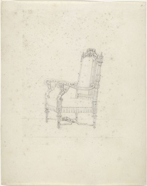 Curator: Let's turn our attention to this intriguing pencil drawing titled "Study of a Chair" by Robert Smirke. The piece, simply put, captures... a chair. Editor: That chair looks like it's seen things, hasn't it? It has that lovely sketched, fragile, maybe a bit weary, sort of energy about it. I imagine it sitting in a dusty corner of some grand, echoing hall. Curator: Well, it probably did, metaphorically if not literally! Smirke, later known for his architectural designs, particularly the British Museum, seemed to be exploring forms and functional elegance here. I wonder where this sketch sat within the wider trajectory of 19th-century British design. Editor: I get it, design and all that! But there's something intimate here. Like catching the soul of an object while it isn't looking. The lightness of the pencil, the slightly imperfect lines... It's more feeling than form to me. What can you find out about what kinds of rooms might have housed a chair like this one? Curator: While dating this drawing precisely is difficult, Smirke's stylistic tendencies suggests the Regency period. So it’s very probable that the object itself might reside within grand reception rooms. Aristocratic and nouveau riche clients were furnishing properties with neoclassically informed items. Such patterns of consumption gave form to social meanings! Editor: Neoclassical and social meanings, alright. Still, I bet even neoclassical chairs get lonely. Perhaps that's what the drawing shows: a study of lonely elegance. It almost inspires me to write a melancholic poem... but maybe that's just me projecting again. Curator: No, I think you highlight an interesting aspect. We expect preparatory drawings to merely be technical. Your idea encourages a broadening understanding of the emotional valence of sketching as practice in the life of the studio and beyond! Editor: Ha, who knew that by waxing lyrical about a sketched chair I could help us see the full complexity of its purpose and its moment! So long as you could ground my wanderings in the social conditions and the aesthetic environment, right? Curator: Precisely! Thanks for offering that imaginative dimension; it will certainly spark interest among a wide range of audiences!