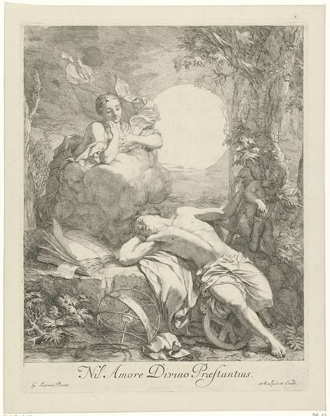 Editor: So here we have François Lemoyne's *Narziss*, an oil painting depicting the mythological figure. The hazy, dreamlike quality and soft color palette give it an almost melancholic feel. I'm curious, looking at it through a historical lens, what catches your eye about this piece? Curator: Well, it's fascinating to consider how Lemoyne’s *Narziss* participates in and perhaps critiques the Baroque fascination with classical narratives. It's less about grand pronouncements of power, and more about internalized, psychological drama. Consider the role of the Rococo movement during Lemoyne's time; can you see how that cultural moment impacted how this scene is portrayed, compared to, say, a Renaissance depiction of a mythological subject? Editor: I can see that. It’s less overtly heroic, definitely more intimate. Almost as if we're intruding on a private moment of self-absorption. But, I wonder, did the salons influence that shift, since art became more of a commodity within those settings? Curator: Absolutely. Salons reshaped artistic patronage and the consumption of art. Mythological subjects provided an acceptable vehicle to depict sensual, sometimes even homoerotic, themes within an elite, educated social sphere. Lemoyne seems acutely aware of his audience’s desires. Does that affect your initial reaction at all? Editor: It does make me rethink that sense of melancholy I initially perceived. Now, there's also a current of voyeurism that I pick up. Like we are not only observing him, but complicit in his…self-obsession. Curator: Precisely. So, as we move through the exhibit, consider how the institutional context itself—the museum— shapes your viewing experience and colors the ever-shifting reception of such imagery. Editor: That's definitely something I'll be thinking about. It makes you consider your own relationship to the work and its cultural legacy. Thanks.