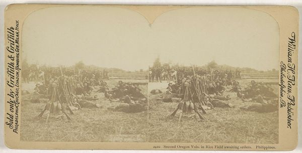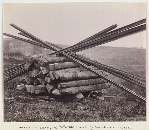 Curator: This photograph, circa 1907, comes to us from Woodhead Studio, and it's titled "Defectives, Epileptics: United States. Massachusetts. Palmer. State Hospital for Epileptics: Woodworkers at Farm Group #1 & #2." Editor: Wow, that title just chills you, doesn't it? A landscape full of human labor... but immediately framed by that clinical, dehumanizing language. Curator: The image documents labor at the Palmer State Hospital for Epileptics, offering insight into the institution's means of production and patient work programs. Look closely at the wood piles, the axes, the arrangement of the figures. Editor: It feels like a stage, almost. The men frozen mid-scene. I'm struck by the contrast between their labor and the bleak, almost picturesque landscape in the background. It's haunting. Curator: Indeed. The photograph's power lies in its stark depiction of labor, institutional control, and the complex relationship between social context and human experience. Editor: A glimpse into a world we'd rather not see, forcing us to confront uncomfortable truths.